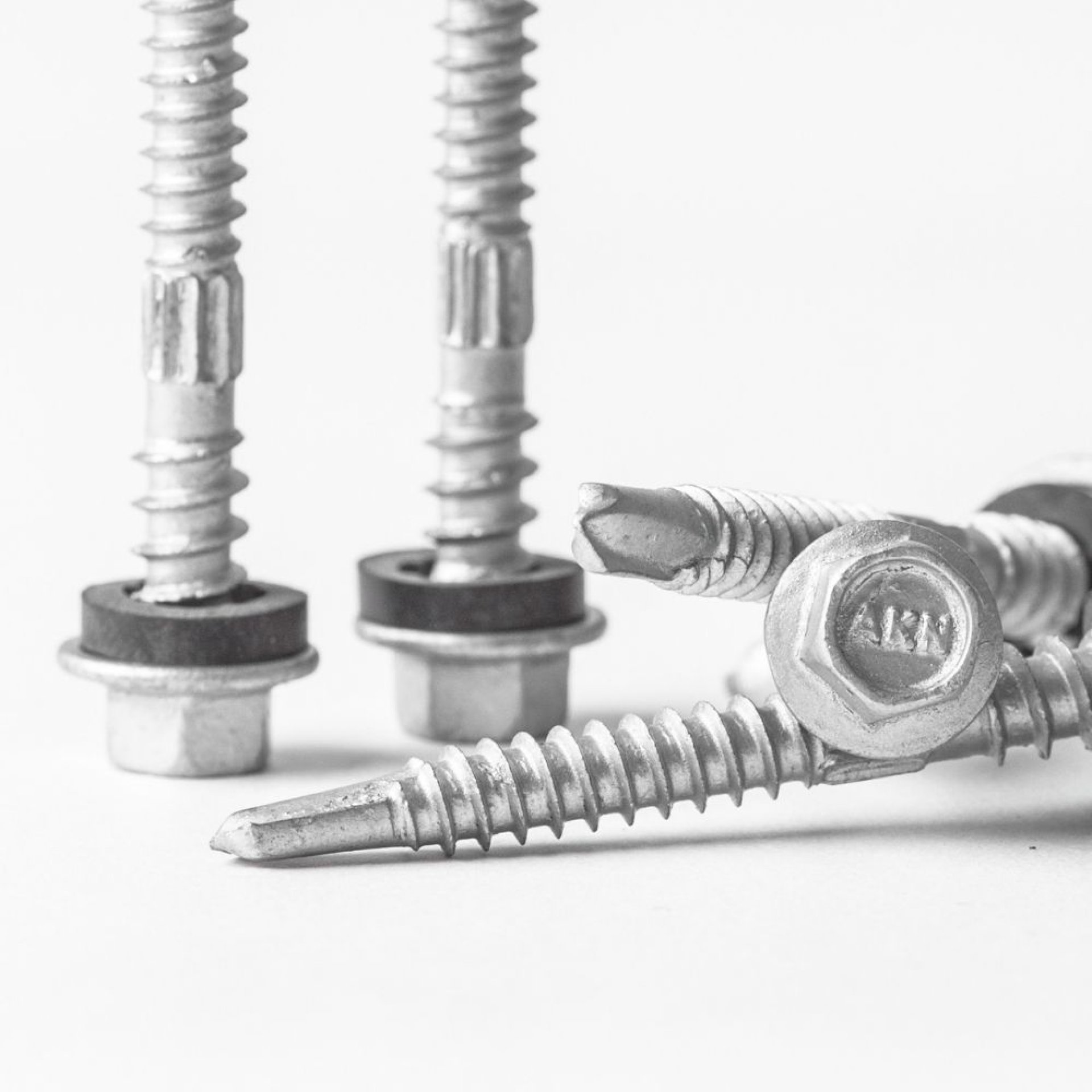 - สกรูปลายสว่านหัวหกเหลี่ยม H10 x 16–25 mm ชุบซิงค์ขาว / ซิงค์รุ้ง (AKN ผลิตได้)